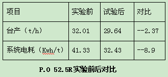 P.O 52.5R水泥技術(shù)經(jīng)濟指標(biāo):