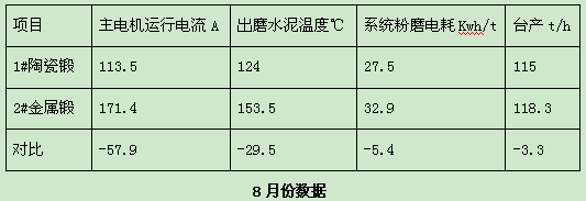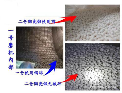 在試驗(yàn)中,一倉仍然使用金屬研磨體(54t),二倉使用86t陶瓷研磨體,比原來減少40t。