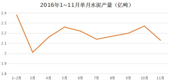 圖2 2016年1-11月單月水泥產量圖