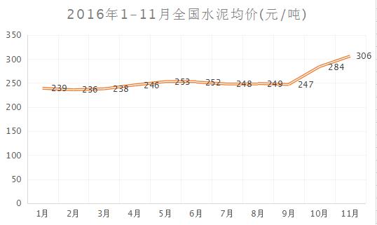 圖3 2016年1-11月全國水泥均價