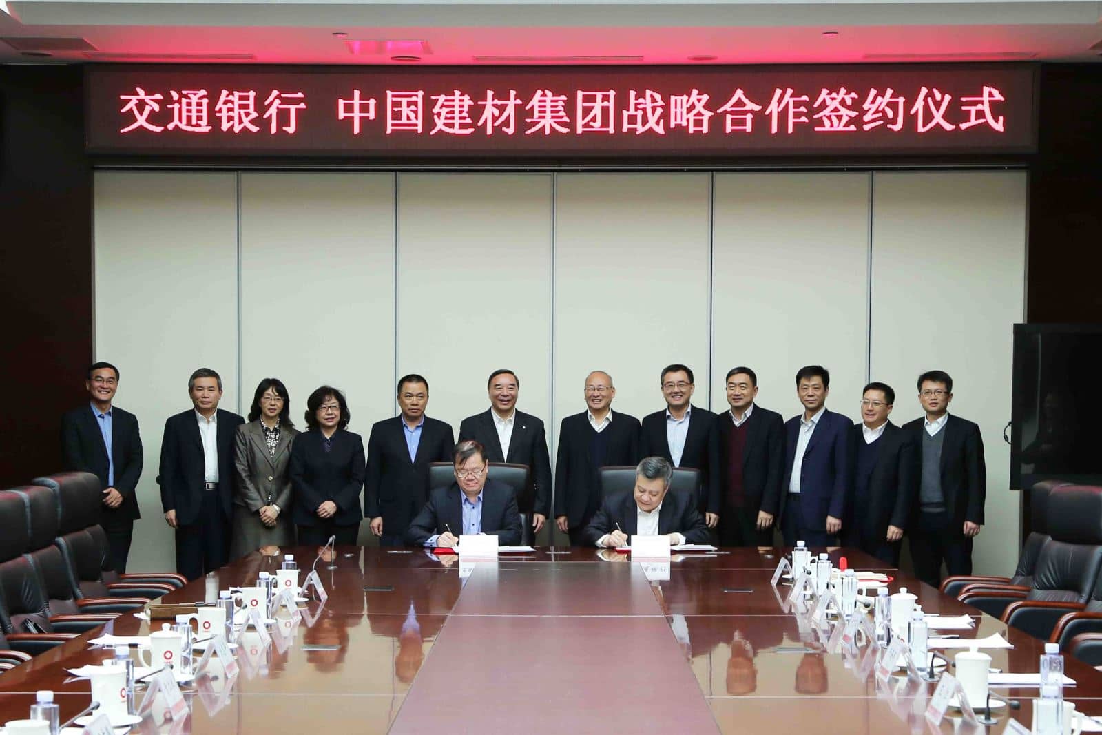 集團(tuán)財(cái)務(wù)部總經(jīng)理曲新、中材股份副總裁兼董事會(huì)秘書顧超、中建材進(jìn)出口常務(wù)副總經(jīng)理兼總會(huì)計(jì)師趙延敏,交通銀行總行相關(guān)部門、北京管理部、北京市分行有關(guān)領(lǐng)導(dǎo)參加了簽約儀式。