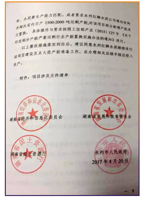 圖:關(guān)于永州紅獅水泥項(xiàng)目處理意見