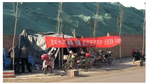 居民在水泥廠門口搭建簡易棚,日夜監(jiān)控