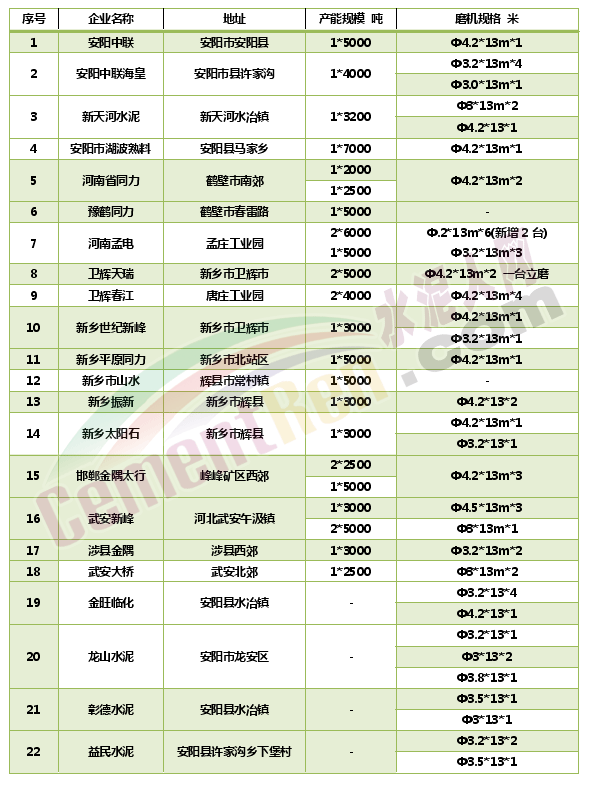表1:河南區(qū)域參與競合水泥企業(yè)及生產線名錄