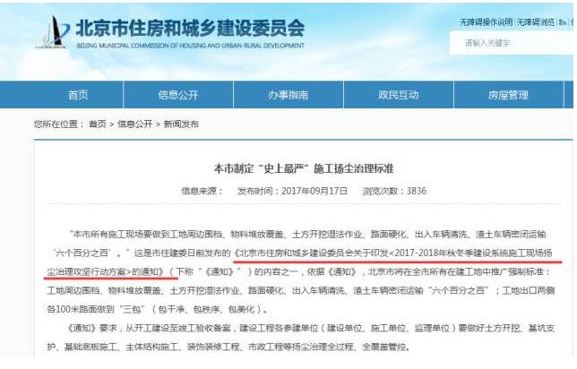北京要求,城六區(qū)及10個(gè)新城區(qū)的各類道路工程、水利工程、土石方作業(yè)和房屋拆遷施工等全面停工,停工4個(gè)月(2017年11月15日至2018年3月15日)。對拒不停工項(xiàng)目、揚(yáng)塵不達(dá)標(biāo)等項(xiàng)目,將暫停相關(guān)單位的投標(biāo)資格。