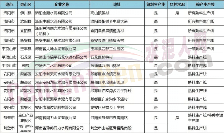 近日從當?shù)叵嚓P部門獲悉,冬季停窯涉及的七十余家水泥企業(yè)包括熟料生產(chǎn)線外還包括多家特種水泥生產(chǎn)線。具體停產(chǎn)時間名單詳情如下: