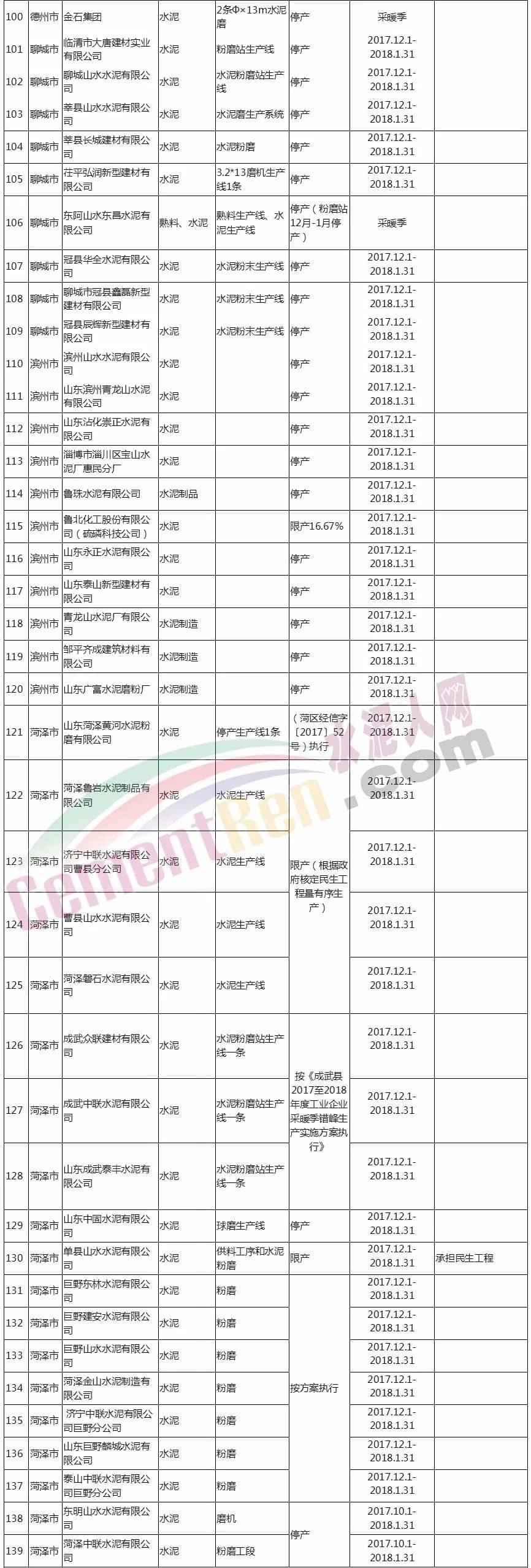 同日,山東省水泥協(xié)會(huì)發(fā)布《關(guān)于山東省水泥企業(yè)正式實(shí)施冬季錯(cuò)峰生產(chǎn)的通知》,該通知明確規(guī)定: