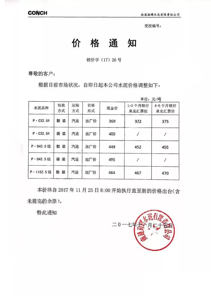 南通海螺水泥本月已經(jīng)五次發(fā)布提價(jià)通知,本月內(nèi)PO42.5散裝水泥漲近100元/噸。漲價(jià)通知如下:
