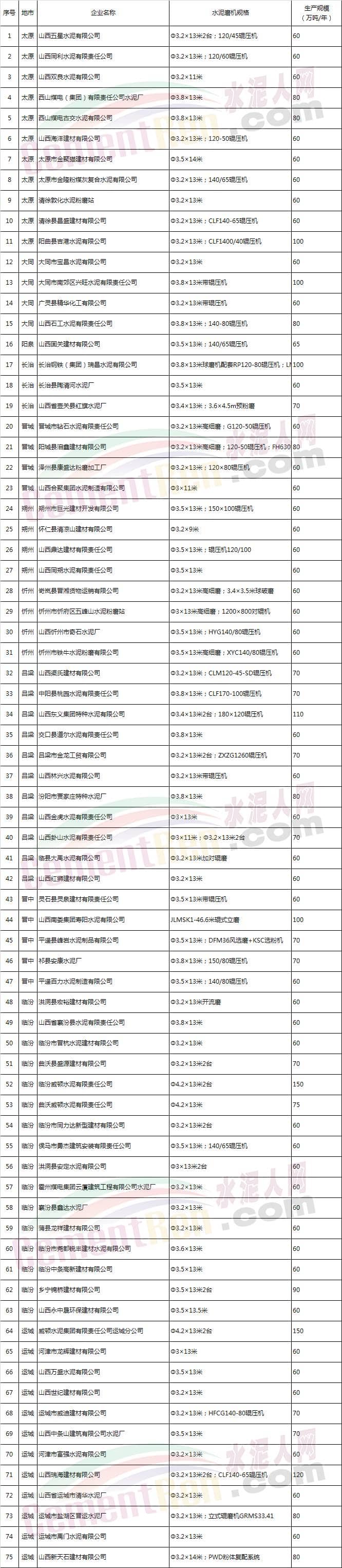 山西粉磨站企業(yè)名單