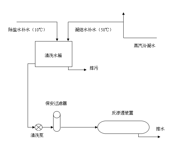 改造過程中可以看出,改造前清洗用水為除鹽水(10℃),冬季溫度偏低,無法將藥品完全溶解,進而達到清洗反滲透離子膜的目的,造成了不必要的水耗及電耗,所以我們將凝汽器冷凝后的水取至清洗水箱,它的溫度為50度左右,完全可以達到溶解藥品的目的,而且它為冷凝水,更為純凈,保證了水質(zhì)的前提下,降低了水耗及電耗,提高了反滲透系統(tǒng)的產(chǎn)水量,滿足了運行需求,達到了預(yù)期的效果。