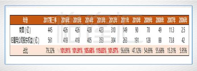 而投資者一直關注的商譽問題,通過合并注資,使得占歸屬母公司股東權益的比例從79.3%的高值下降到55.5%,返回到2008-2011年的相對低階水平,抵抗商譽潛在風險的實力得到加強。