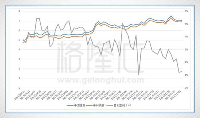 我們發(fā)現有不少投資者認為,高的沽空數據是由于套利操作致使,根據2017年9月8日周五晚公布的中國建材和中材股份吸收合并的重組方案里表示每1股中材股份能換取0.85股的中國建材的新增股份。通過我們認真研究發(fā)現,中國建材和中材股份根據重組方案產生的套利操作空間已經漸趨消失,在不考慮沽空成本和買賣傭金稅金,只有1%左右。