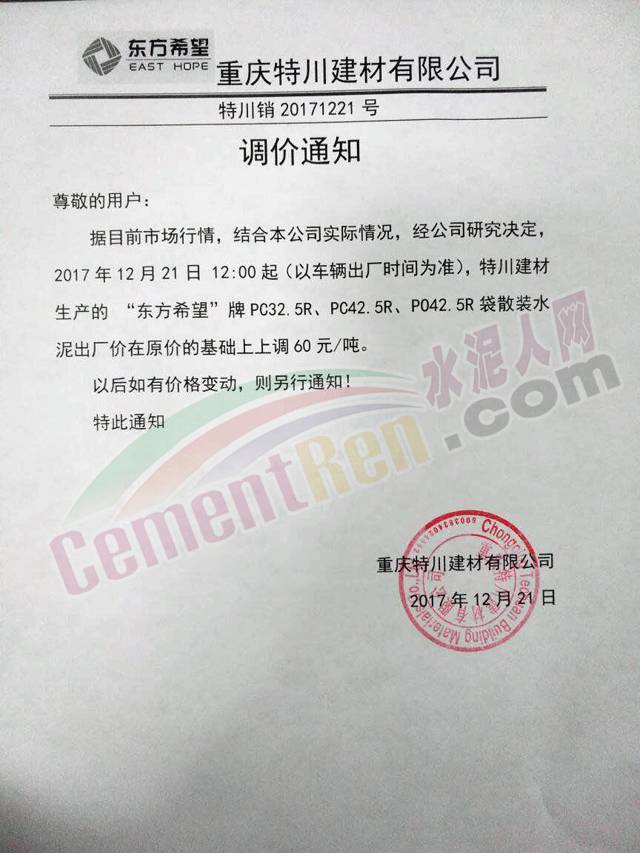 近兩日四川成都地區(qū)以及重慶市各企業(yè)紛紛上調(diào)出廠價(jià),上調(diào)幅度在50-60元/噸。