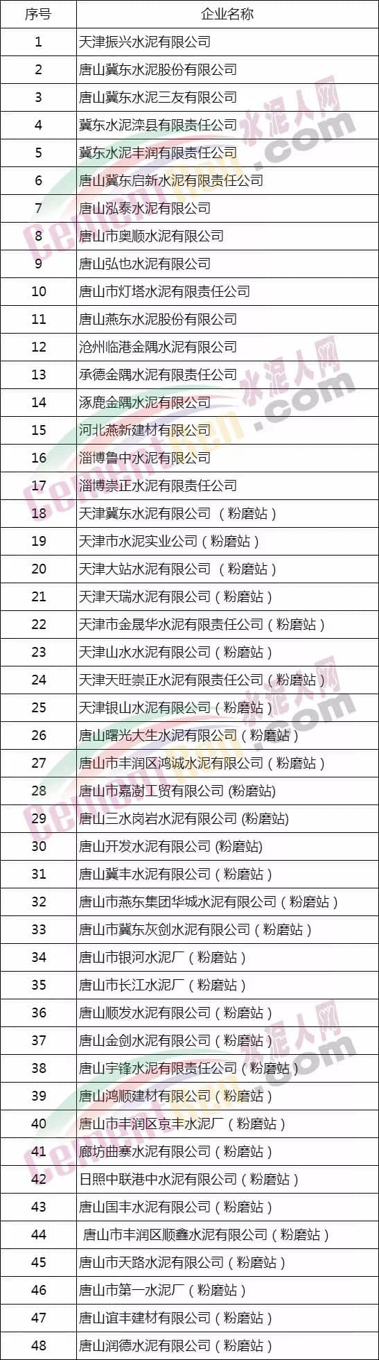據(jù)水泥人網(wǎng)了解,天津市城鄉(xiāng)建設(shè)委員會(huì)自2016年10月份以來,發(fā)布的《旋窯水泥生產(chǎn)企業(yè)名錄》中,共有90多家水泥企業(yè)。