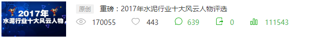 點評:通過此次的評選篩選出水泥行業(yè)的網(wǎng)絡紅人------“人氣王”。水泥行業(yè)的健康發(fā)展離不開這些具有號召力企業(yè)家的影響及推動。