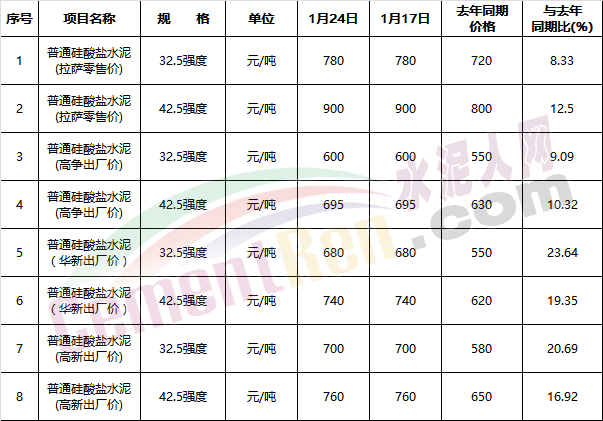 水泥人網(wǎng)信息中心監(jiān)控?cái)?shù)據(jù)顯示西藏自治區(qū)的水泥價(jià)格一直處于全國(guó)水泥價(jià)格最高位,且一直居高不下,最高價(jià)時(shí)PO42.5散裝水泥市場(chǎng)價(jià)高達(dá)1100元/噸。相對(duì)于生產(chǎn)成本而言這無(wú)異于是“暴利”。