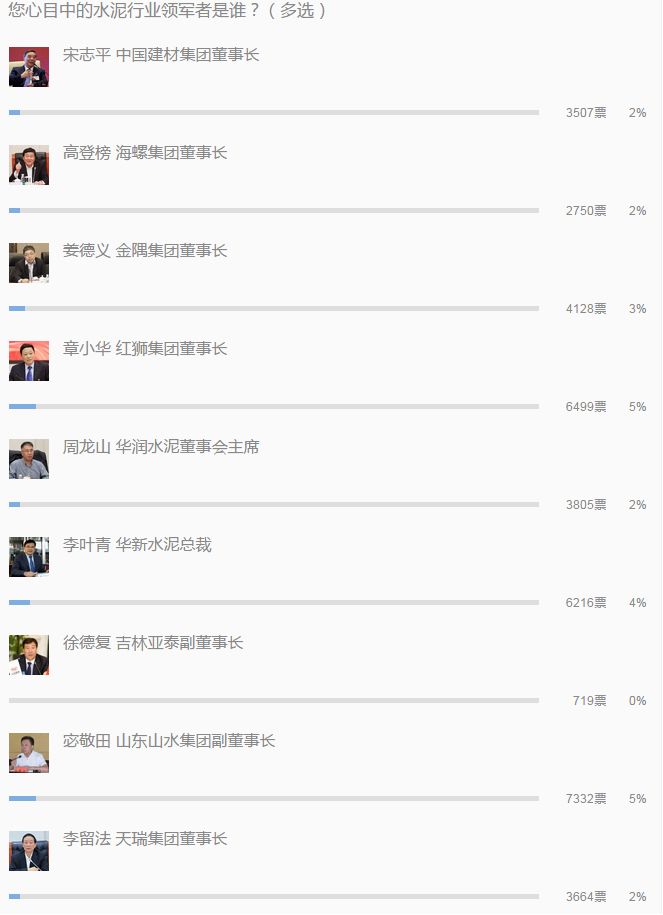 在全國經(jīng)濟(jì)持續(xù)低迷的大背景之下,2017年國內(nèi)水泥行業(yè)逆勢(shì)而上,創(chuàng)下了近六年的行業(yè)利潤(rùn)新高,各大水泥企業(yè)更是滿載而歸。這都與國內(nèi)水泥企業(yè)負(fù)責(zé)人的拼搏與努力是分不開的,在水泥人網(wǎng)發(fā)起的“2017年水泥行業(yè)十大風(fēng)云人物”評(píng)選過程中,高登榜、姜德義等行業(yè)大佬成功入選。