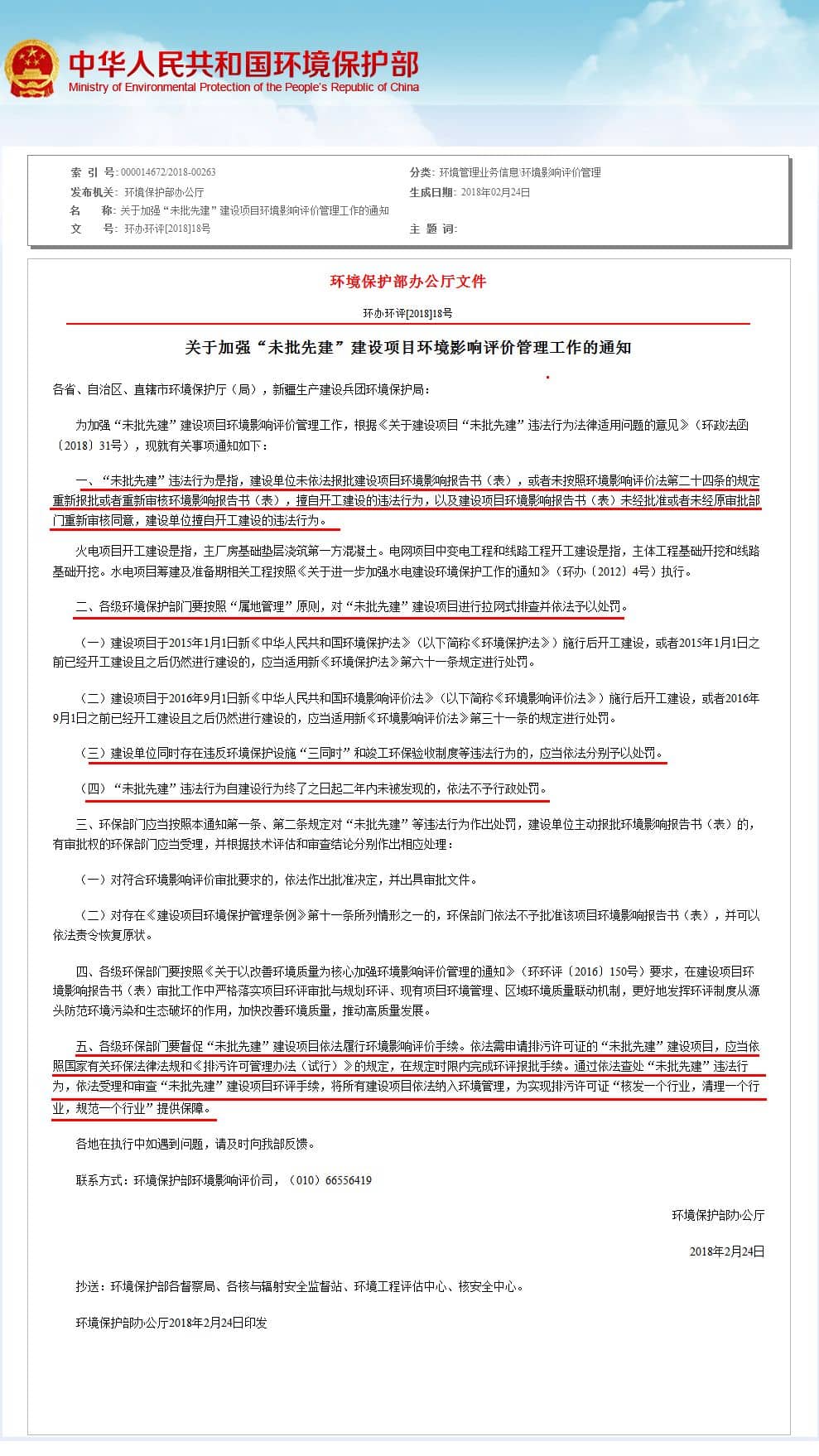 發(fā)文同時明確,“未批先建”違法行為是指,建設(shè)單位未依法報批建設(shè)項目環(huán)境影響報告書(表),或者未按照環(huán)境影響評價法第二十四條的規(guī)定重新報批或者重新審核環(huán)境影響報告書(表),擅自開工建設(shè)的違法行為,以及建設(shè)項目環(huán)境影響報告書(表)未經(jīng)批準(zhǔn)或者未經(jīng)原審批部門重新審核同意,建設(shè)單位擅自開工建設(shè)的違法行為。
