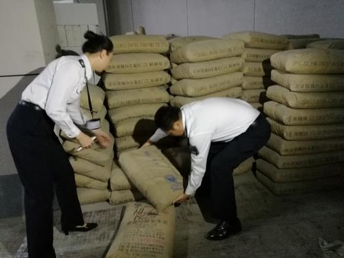執(zhí)法人員現(xiàn)場查扣17.5噸假水泥