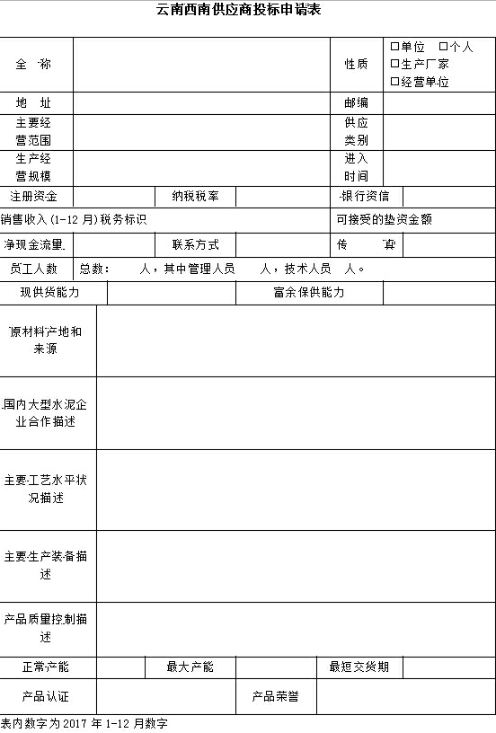 附件:云南西南供應(yīng)商投標申請表