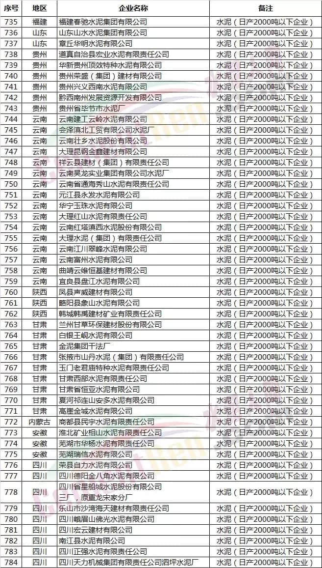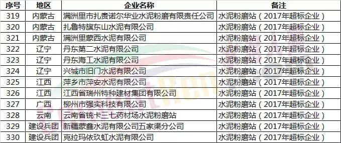 2017年超標(biāo)粉磨站企業(yè)共12家