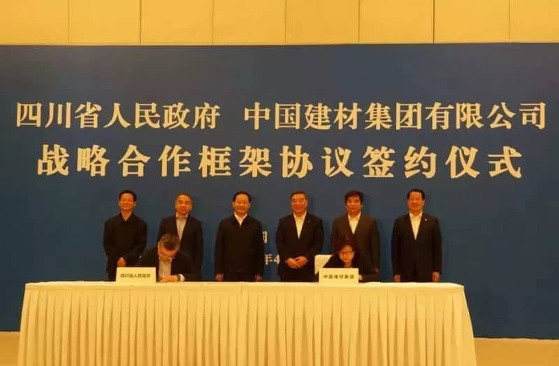 中國建材集團(tuán)集團(tuán)總會計師徐衛(wèi)兵和四川省副省長朱鶴新代表雙方簽字。集團(tuán)紀(jì)委書記楊杰,四川省委常委、成都市委書記范銳平出席儀式。