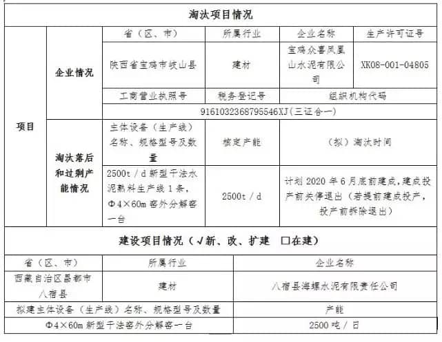 水泥熟料產(chǎn)能置換情況表
