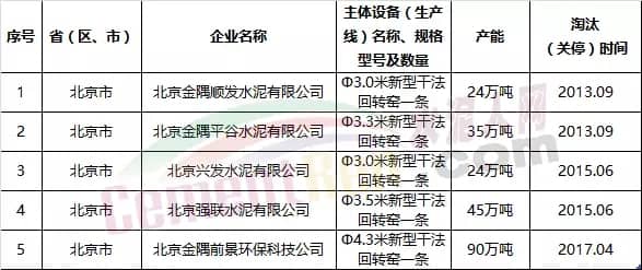 北京市5條熟料生產(chǎn)線名單