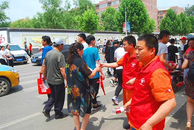 在每場(chǎng)考試之前和結(jié)束之后,贊皇金隅公司的志愿者為考生和家長送水。在考試的中間,志愿者們會(huì)邀請(qǐng)考生家長在服務(wù)站休息,并送上一瓶水,與家長們聊聊天,緩解一下家長們的緊張情緒。家長們說:“孩子在里面考,家長在外面考,心情更緊張,來你們這里坐一會(huì)兒,喝瓶水,再和你們聊聊,感覺放松了不少,真是太感謝贊皇金隅公司為考生和我們家長考慮的這么周到。”一聲聲問候,一面面笑臉,青年志愿者們熱情周到的志愿服務(wù),受到了廣大青年學(xué)子和家長的認(rèn)可和歡迎,大家紛紛為他們的樂于奉獻(xiàn)的精神點(diǎn)贊。