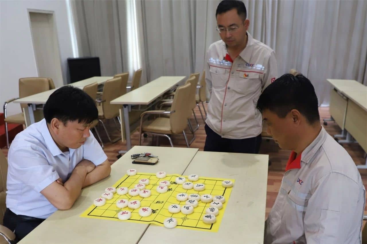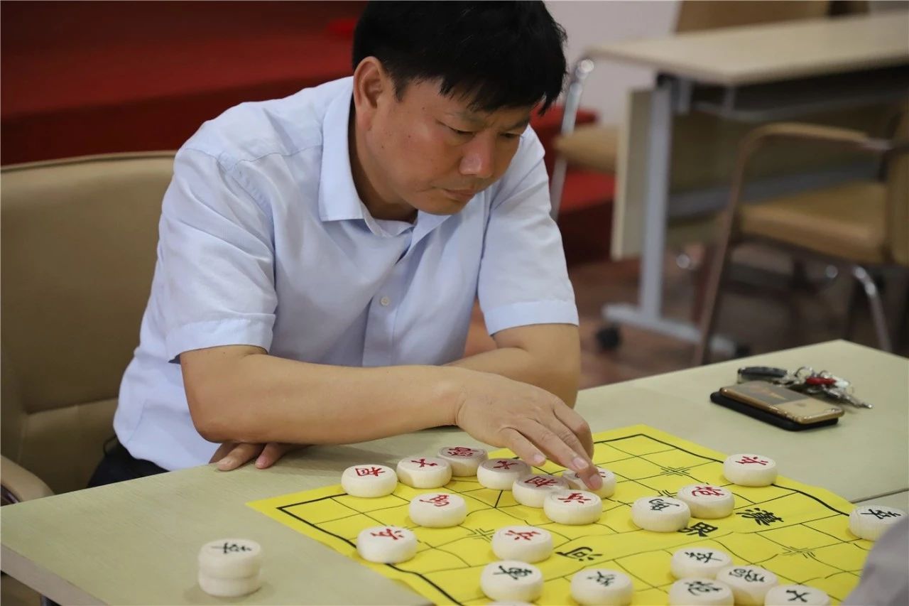 象棋比賽在公司禮堂舉辦。在沒有硝煙的博弈戰(zhàn)場上,參賽選手們鎮(zhèn)定自若,像指揮千軍萬馬的將軍那樣運籌帷幄,指揮著棋盤上的棋子。楚河漢界,誰主沉浮!緊張的比賽現場似乎能讓觀棋者想象到戰(zhàn)車滾滾、馬蹄聲聲、炮聲隆隆的古戰(zhàn)爭場面!