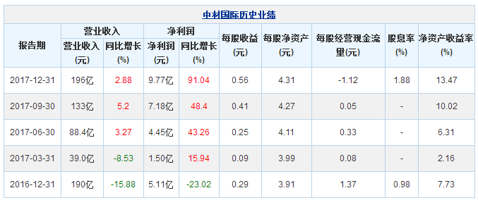 中材國際3月24日最新公布的2017年年報(bào)顯示,其營業(yè)收入196億元,同比增長2.88%;歸屬于上市公司股東的凈利潤9.77億元,同比增長91.04%?;久抗墒找?.56元。