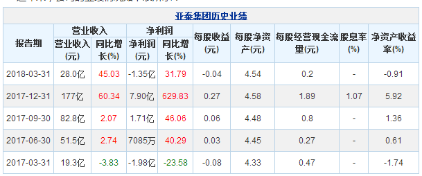 亞泰集團(tuán)4月14日最新公布的2017年年報(bào)顯示,其營業(yè)收入177億元,同比增長60.34%;歸屬于上市公司股東的凈利潤7.90億元,同比增長629.83%。
