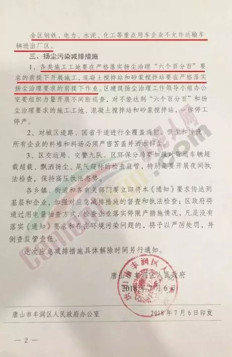 此次唐山市政府為何發(fā)出如此嚴(yán)厲的文件,不得不從前幾日的停產(chǎn)文件說起,7月6日唐山市豐潤(rùn)區(qū)人民政府發(fā)布關(guān)于做好近期污染天氣過程應(yīng)對(duì)工作的緊急通知,要求豐潤(rùn)區(qū)所屬水泥企業(yè)全部停產(chǎn)(文件如下):