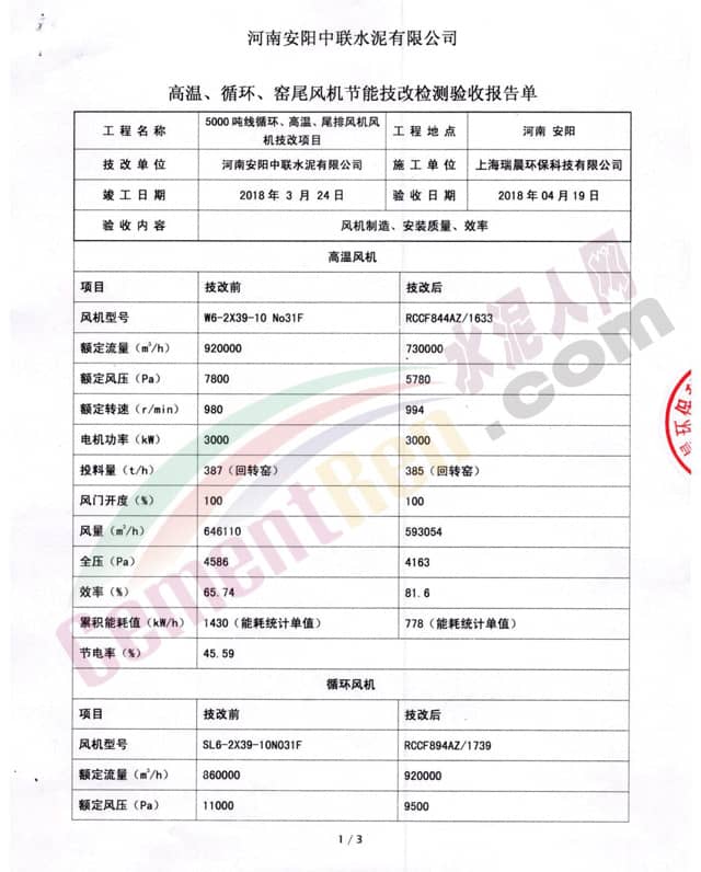 隨著水泥行業(yè)競爭越來越激烈,為降低生產(chǎn)成本,中聯(lián)水泥河南區(qū)域公司與上海瑞晨深度合作,開展熟料線五大風(fēng)機(jī)節(jié)能技改工作。通過提升風(fēng)機(jī)自身性能,整改系統(tǒng)中存在的不利因素,量身定制高效節(jié)能風(fēng)機(jī),提升風(fēng)機(jī)運行效率,減少無效耗能,達(dá)到最佳節(jié)能效果。