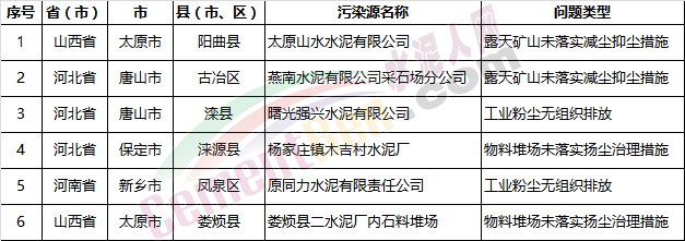 環(huán)保督查越發(fā)嚴(yán)格,近期發(fā)現(xiàn)的問題多在揚(yáng)塵污染以及工業(yè)粉塵無組織排方面,僅有個(gè)別企業(yè)未安裝相關(guān)治污設(shè)備或治污設(shè)備未正常運(yùn)轉(zhuǎn)的。水泥企業(yè)方面,近期查到的問題多在礦山揚(yáng)塵治理方面。