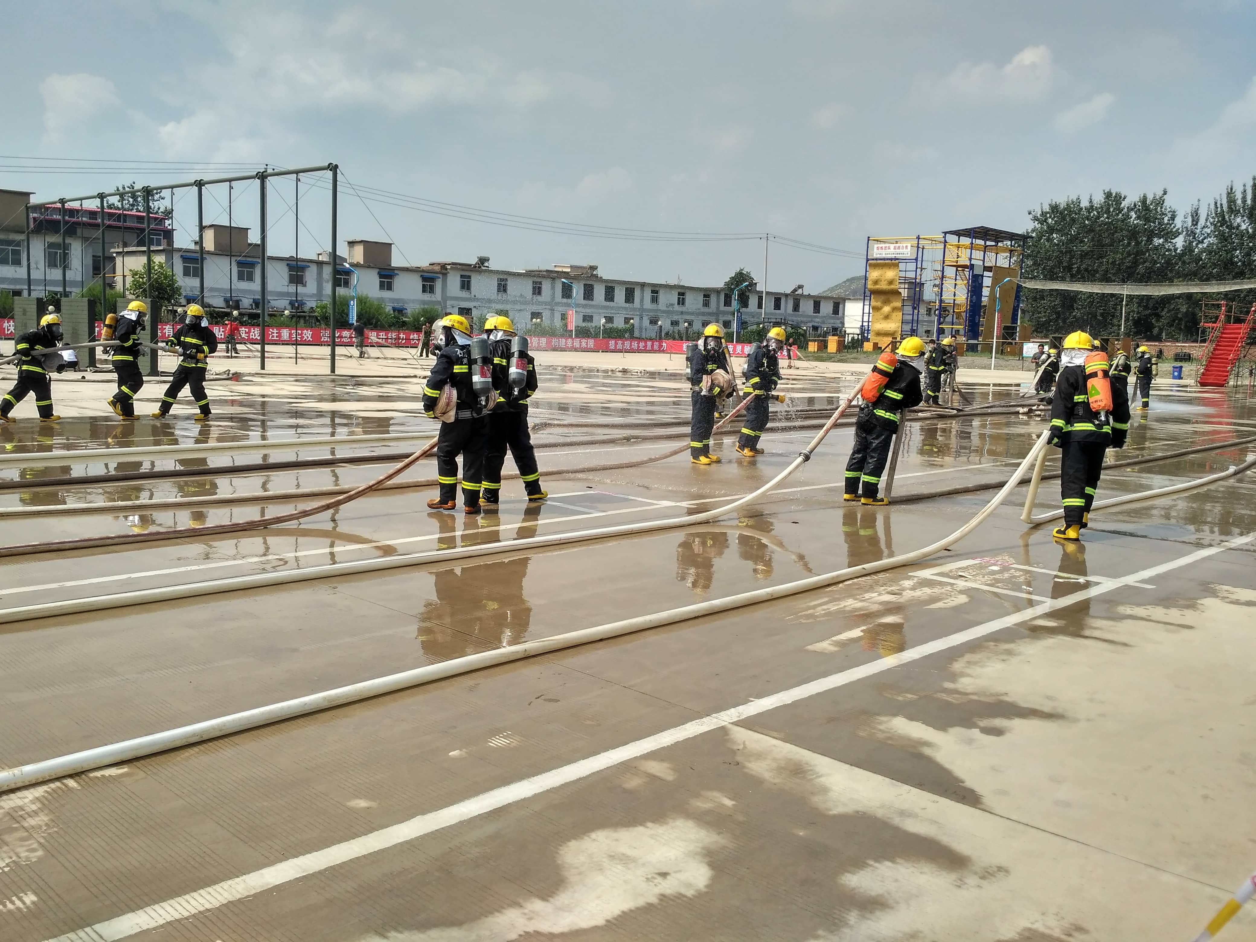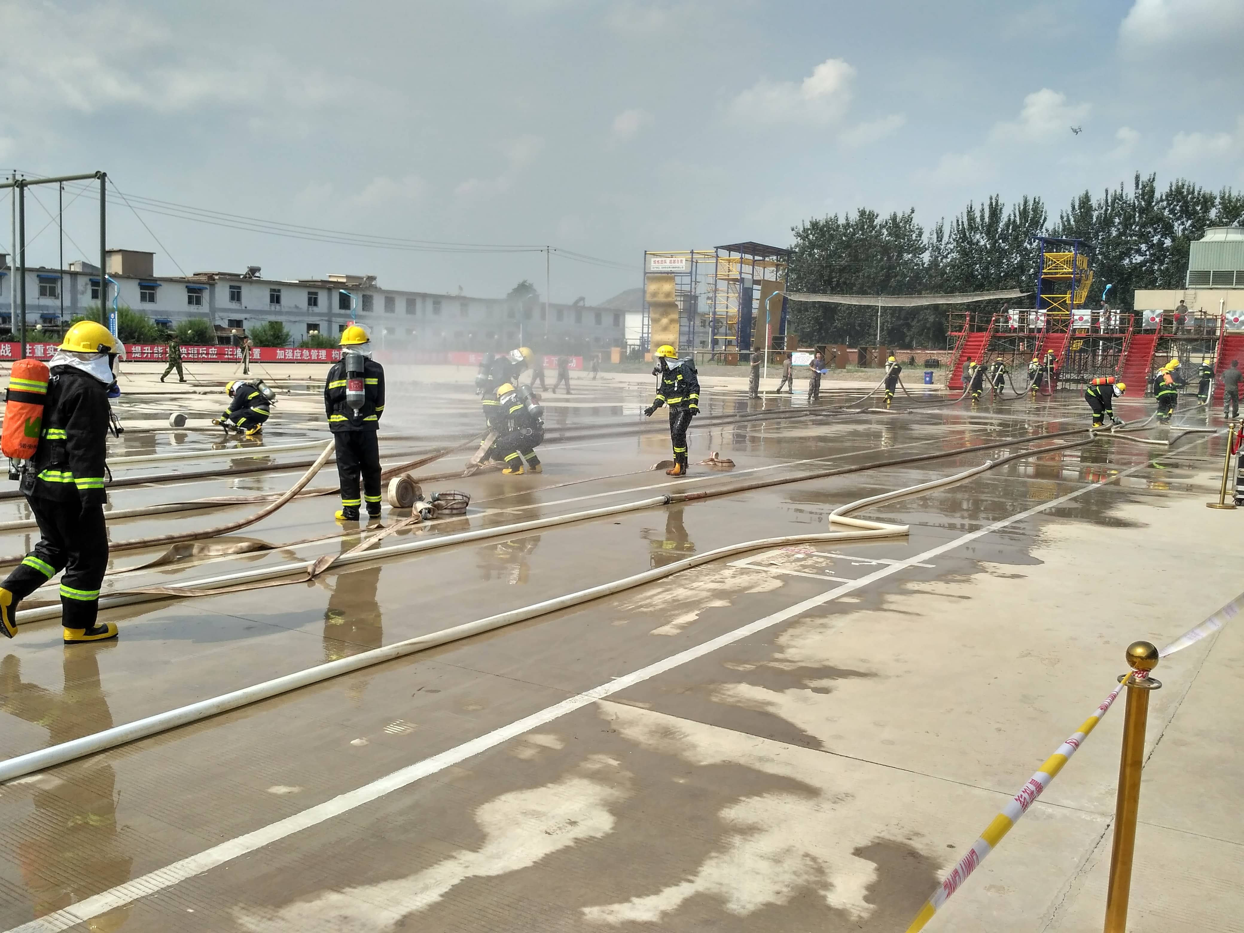 本次比武大賽以“實(shí)戰(zhàn)、實(shí)用、實(shí)力、實(shí)效”為主題,包括綜合體能、帶壓快速堵漏、單兵破拆救人、化工裝置初期火災(zāi)處置、理論知識(shí)考核五項(xiàng)內(nèi)容。