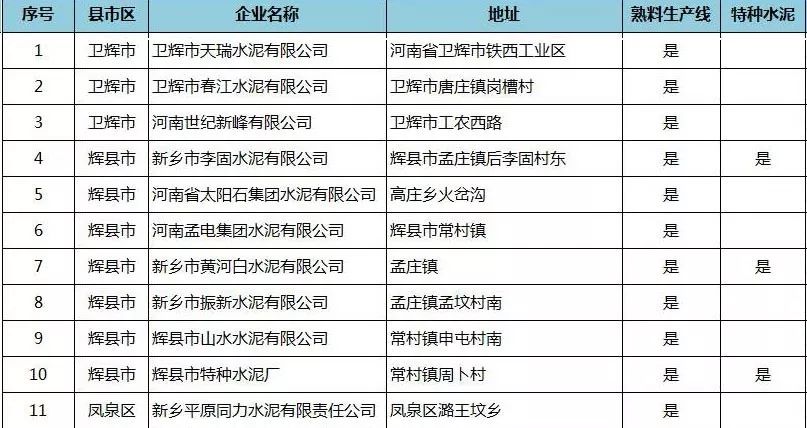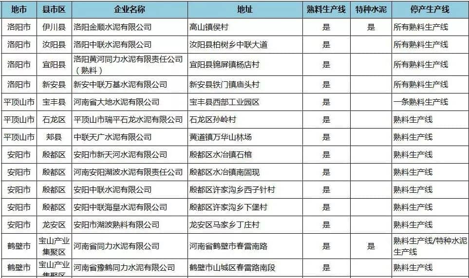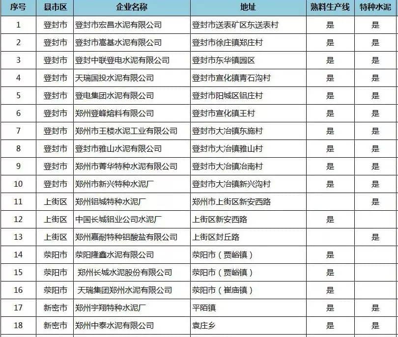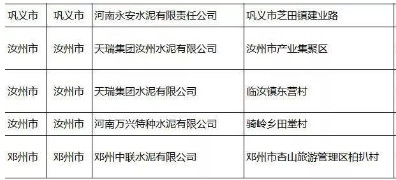 附:河南省水泥企業(yè)名單(含特種水泥)