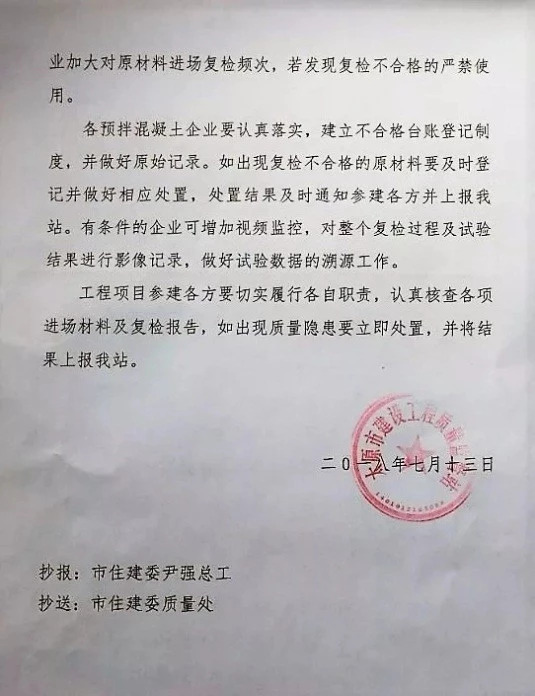 山西省太原市建設工程質(zhì)量監(jiān)督站此前發(fā)布的《關于加強太原市商品混凝土企業(yè)原料復檢的通知》稱,在2018年對全市預拌砼行業(yè)年檢時發(fā)現(xiàn),太原北白水泥制造有限公司生產(chǎn)的北白水泥,氧化鎂含量和氯離子含量超標,影響水泥安定性,安定性不良易使混凝土構件產(chǎn)生膨脹裂縫,影響混凝土耐久性。