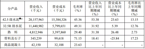 海螺水泥主營(yíng)業(yè)務(wù)分產(chǎn)品情況