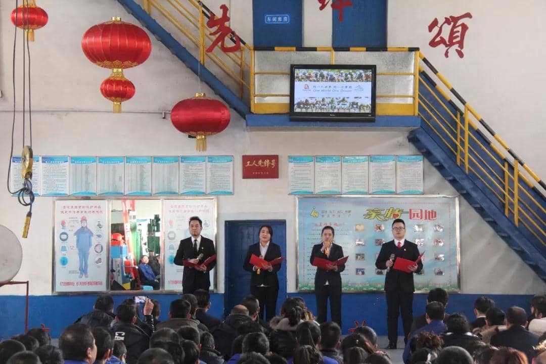 2018年12月18日10點(diǎn),在慶祝改革開放40周年大會(huì)召開的同時(shí),干法二廠在機(jī)電鉗工房舉辦了以“不忘初心,牢記使命”為主題的紀(jì)念改革開放40周年詩(shī)歌朗誦比賽。金泥集團(tuán)公司監(jiān)事會(huì)主席張榮川,黨委副書記、紀(jì)委書記徐世平,行政辦副主任曹鐵民及干法二廠干部職工200余人現(xiàn)場(chǎng)觀看了演出。