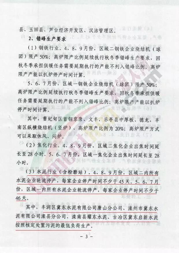 其中,豐潤(rùn)區(qū)冀東水泥有限公司唐山分公司、灤州市冀東水泥有限公司灤縣 分公司、灤南縣耀東水泥、古冶區(qū)冀東啟新水泥按照核定處置污染的最低負(fù)荷生產(chǎn)。