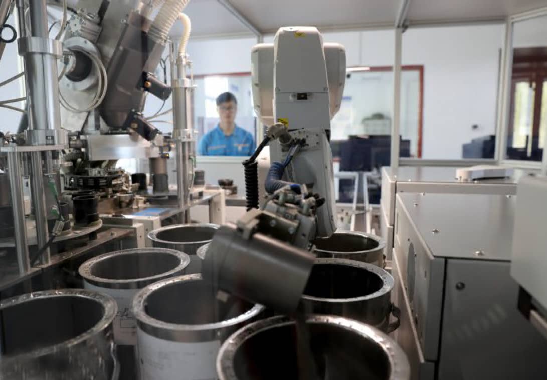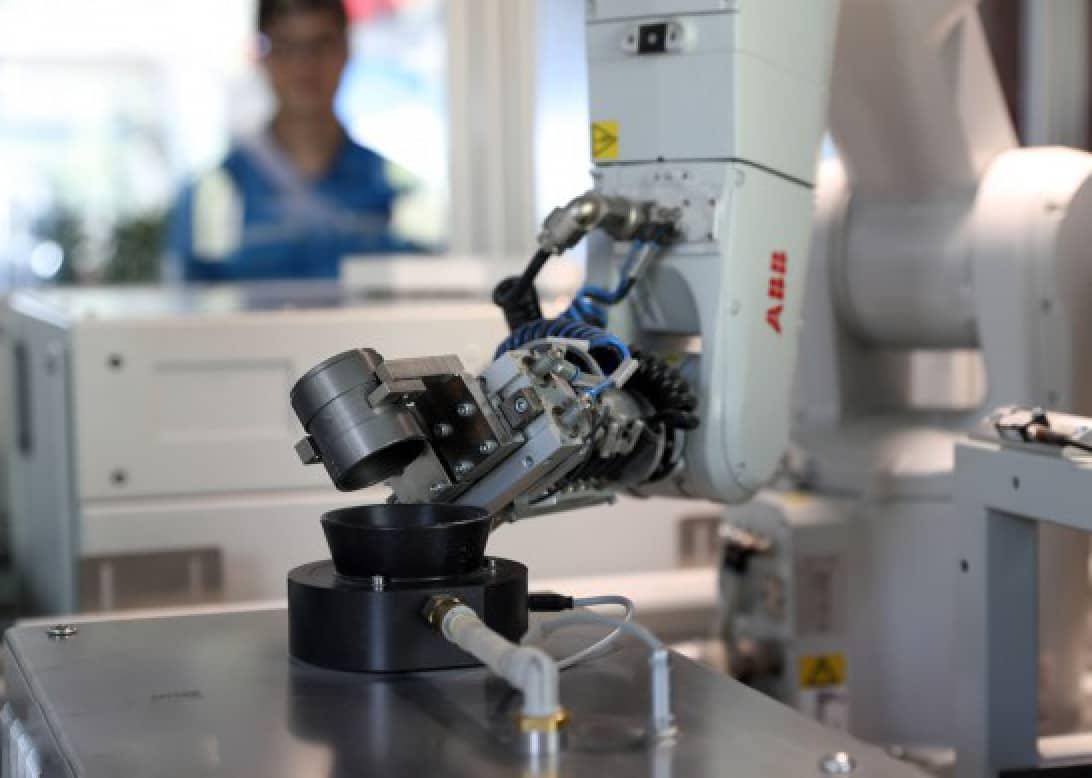 圖:在安徽全椒海螺水泥有限責(zé)任公司智能工廠,機(jī)器人在實(shí)時(shí)不間斷檢測(cè)樣品質(zhì)量