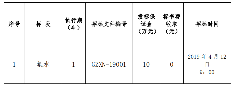 貴州西南水泥有限公司是西南水泥有限公司下屬子公司,于 2012年 3 月 21 日成立。貴州西南水?dāng)M定于 2019 年 4 月對(duì)下屬 26 家成員企業(yè) 2019 年度脫硝氨水進(jìn)行集中招(議)標(biāo),通過(guò)邀請(qǐng)招(議)標(biāo)選擇資質(zhì)合格、保供能力強(qiáng)、質(zhì)量及技術(shù)服務(wù)均受控的供貨單位?,F(xiàn)將相關(guān)招標(biāo)采購(gòu)信息發(fā)布如下: