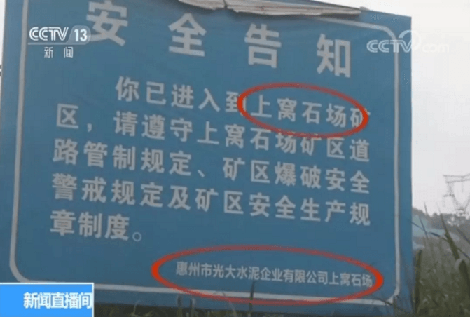記者了解到,采石場叫做上窩石場,隸屬惠州光大水泥有限公司。而這家水泥廠就在采石場旁邊幾百米的位置,從采石場開采出的石灰石直接被運往水泥廠做原料。