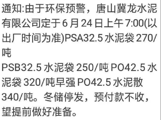 冀東水泥唐山公司等主導(dǎo)企業(yè)發(fā)布調(diào)價(jià)通知稱:隨著水泥行業(yè)開(kāi)始執(zhí)行夏季錯(cuò)峰生產(chǎn),環(huán)保治理力度不斷加大,企業(yè)環(huán)保投入不斷增加,致使水泥成本不斷提高。特與客戶協(xié)商對(duì)其購(gòu)買水泥的出廠價(jià)格進(jìn)行調(diào)整,以保證雙方共同利益。自6月21日8時(shí)起,在唐山地區(qū)購(gòu)買的各品種水泥出廠價(jià)在原價(jià)格基礎(chǔ)上上調(diào)20-40元/噸。