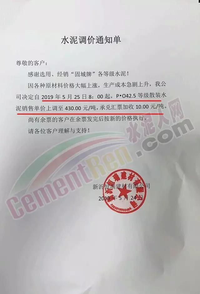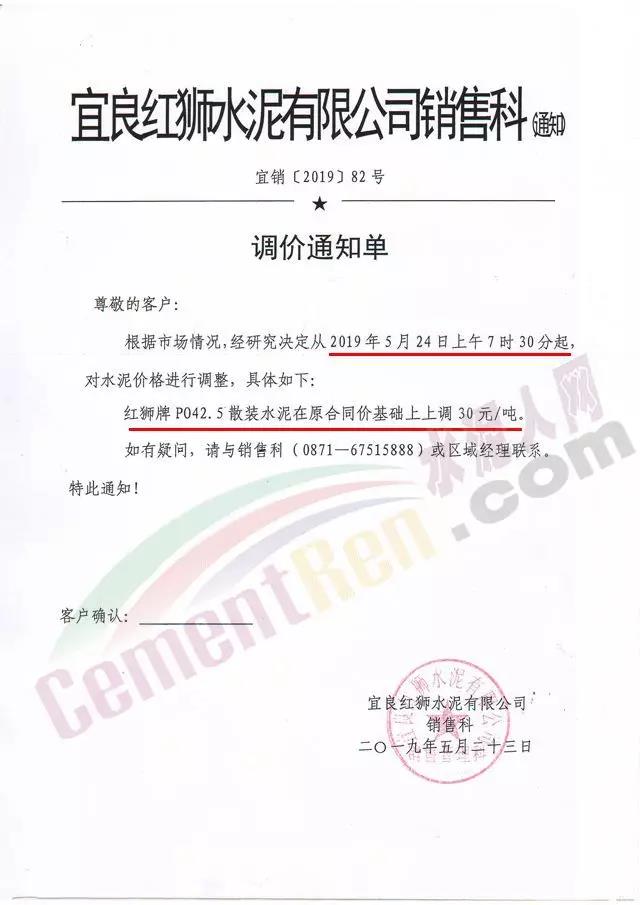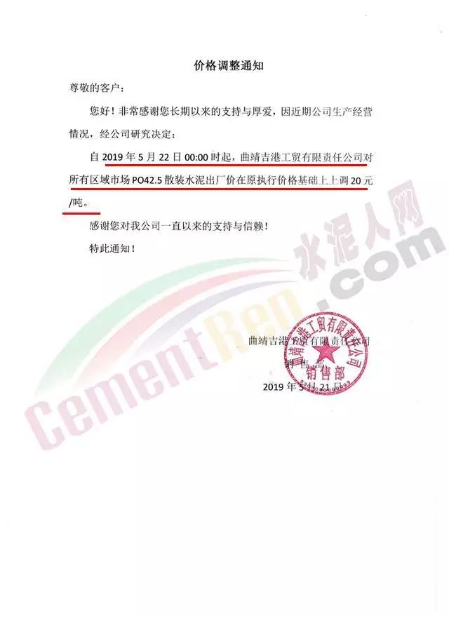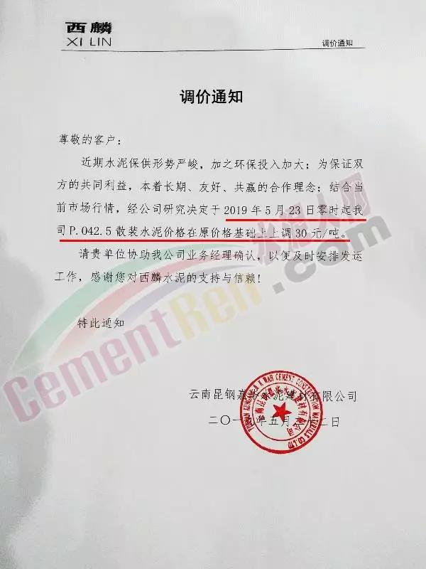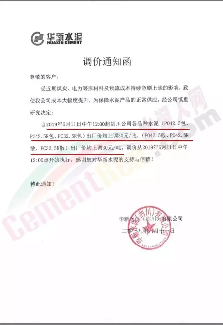 同期,區(qū)域內(nèi)中聯(lián)水泥及海螺水泥全資子公司中國(guó)水泥廠也發(fā)布了調(diào)價(jià)通知。