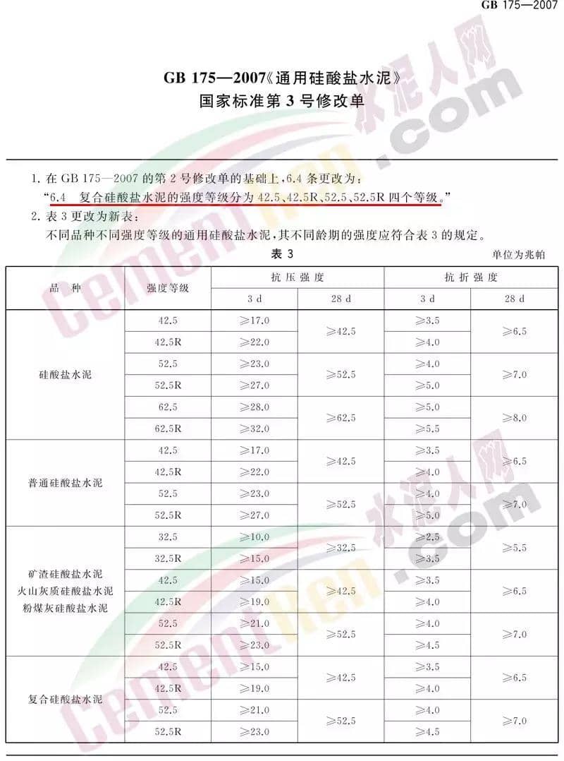 GB175-2007《通用硅酸鹽水泥》3號修改單