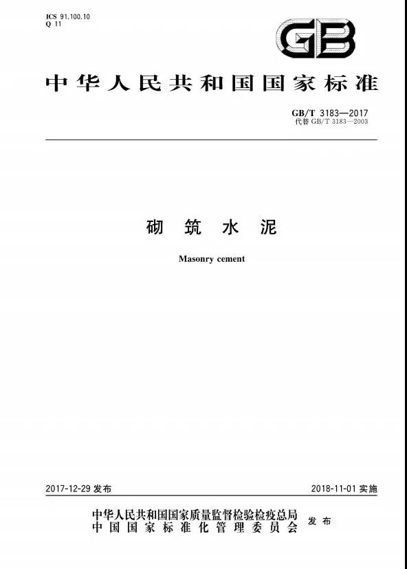 GB/T3183-2017《砌筑水泥》國家標準實施日期為2018年11月1日,從其內容來看,更象是全面取消GB175標準中的32.5標號“打補丁”。