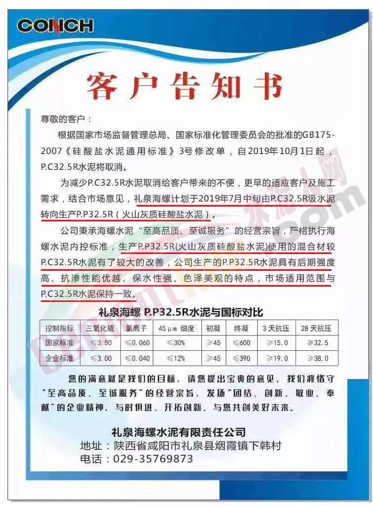 為減少P.C32.5R水泥取消給客戶帶來的不便,更早的適應(yīng)客戶及施工需求,結(jié)合市場意見,禮泉海螺計(jì)劃于2019年7月中旬由P.C32.5R級水泥轉(zhuǎn)向生產(chǎn)P.P32.5R(火山灰質(zhì)硅酸鹽水泥)。