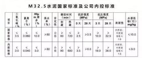 浙江寧波、強(qiáng)蛟和象山海螺新近推出的M32.5水泥的國家標(biāo)準(zhǔn)與海螺水泥工廠內(nèi)控標(biāo)準(zhǔn)對比。海螺水泥工廠的內(nèi)控要求三氧化硫,氯離子含量,80um篩余量,凝結(jié)時(shí)間(包括初凝和終凝)以及抗折強(qiáng)度、抗壓強(qiáng)度、水溶鉻方面均高于國家標(biāo)準(zhǔn)。